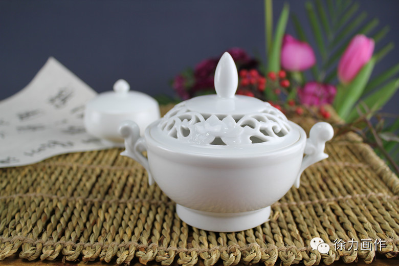 “印香”又称“篆香”,一般是用篆字形模具框范、压印而成。东坡先生从年前入冬便开始炮制香药,准备合成这款“雪中春信”,今天这场春雪,仿佛是上天专送的。他命书童送来笔墨,重新调整了香方,又从博古架上取下一个精致锦匣,拿出一只白如羊脂的玉碗。轻轻擦拭后,唤来妻子朝云和侍女嘱咐道:这是当年御赐之物,当应今日之用。你们用它去取来院中999朵梅花芯中之雪。此雪为纯阳至真之物,此碗盛之可使花气不散。取雪之时要摒弃杂念,存感念天地和爱梅之心,用毛笔轻轻扫下,不可伤及梅花,快去快回!