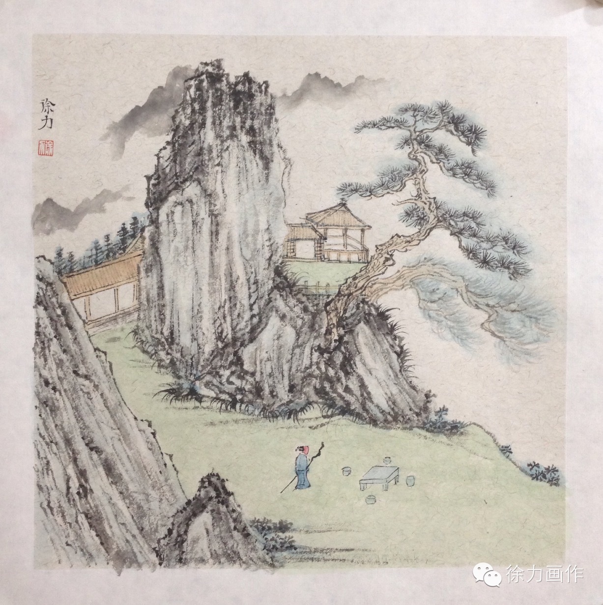 画中渗以水墨皴法,既有青绿山水的明丽,也有文人画的气韵。