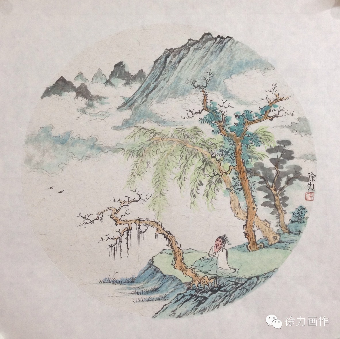 “小青绿山水”为中国画一重要分支,以矿物颜料石青和石绿为主,色泽艳丽,清新自然。
