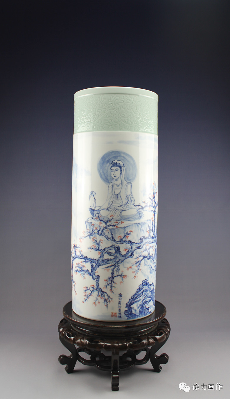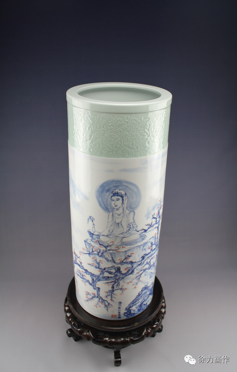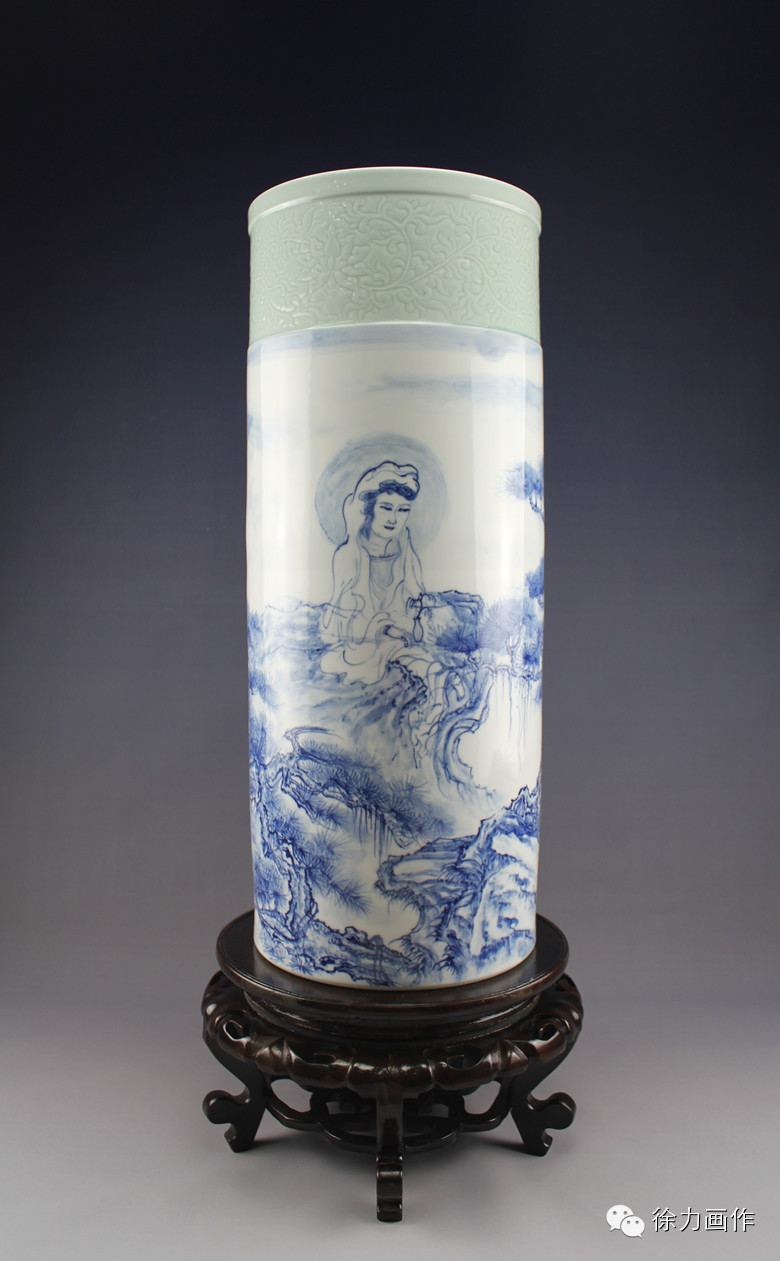 观音雕花大卷筒 高66cm 腰围68cm 直径22cm