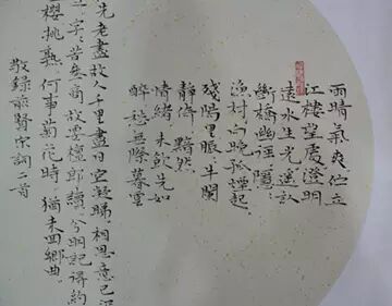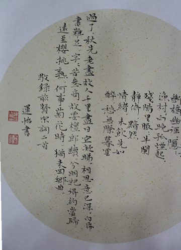 团扇扇面一般为圆形,书写时应随开布局。