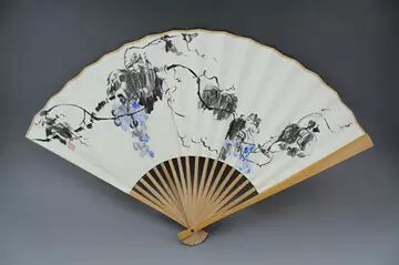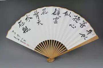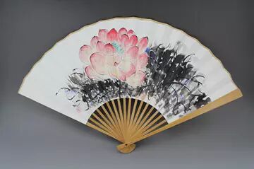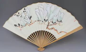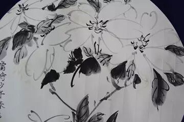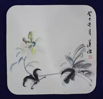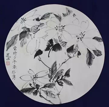 白玉兰是一种极受推崇和观赏的植物,白玉兰花易开易落,“微风吹万舞,好雨尽千缕”,一番风雨可使银妆尽卸,但数日晴和,又新蕾眉头放占尽风情。我在《当时少年春衫薄》画了几枝倒立的白玉兰,迎风飞舞,满幅生机。因白玉兰花为白色,所以用粉色作底,洒银作面使之气息更为接近,用构成方式分成团块,显然一得轻盈中透出凝重,打破了传统扇面的构图表现方式。